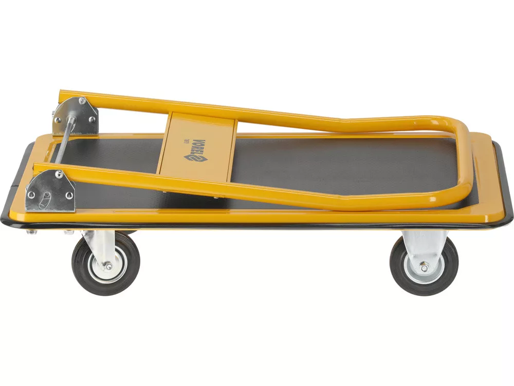 Méret kibontás után: 910x610x860 mm Méret összecsukás után: 910x610x210 mm Lap mérete: 910x610 mm Anyag: acél Felületkezelés: porszórt bevonattal Fogantyú anyag: acél Kerekek száma: 4 Kerek átmérője: 125 mm Kerék anyaga: gumi Csúszásgátló bevonat védi A platform széleit gumi védi, amely elnyeli az esetleges ütéseket. Porszórt acélelemek