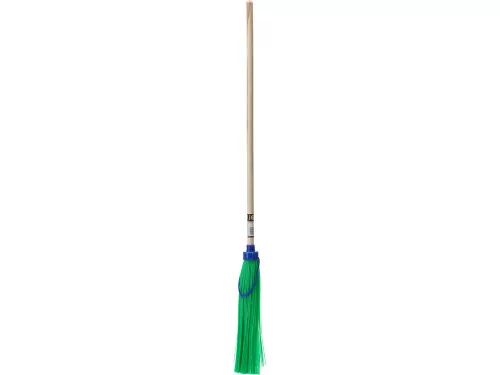A seprű hatékonyan gyűjti össze a szemetet és a leveleket, tökéletes utcasepréshez.