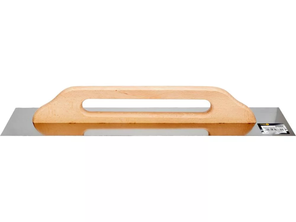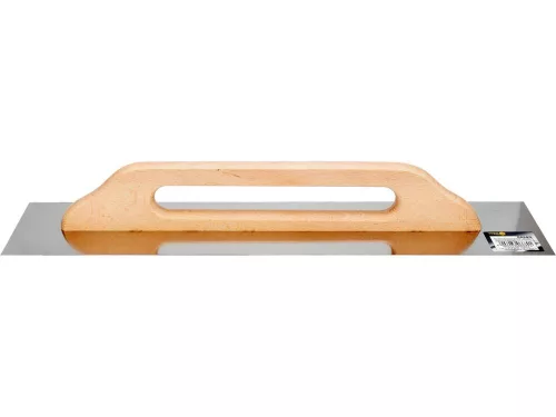 Rozsdamentes acélból készült, 580 mm hosszú. A nagyméretű hagyományos fa nyél biztosítja a simító könnyű kezelhetőségét.