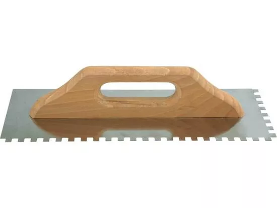 480 mm-es rozsdamentes acéllemezből készült, 8 mm-es fogazattal ellátott tömítőgyűrű. A nagyméretű hagyományos fa fogantyú biztosítja a simító könnyű kezelhetőségét.