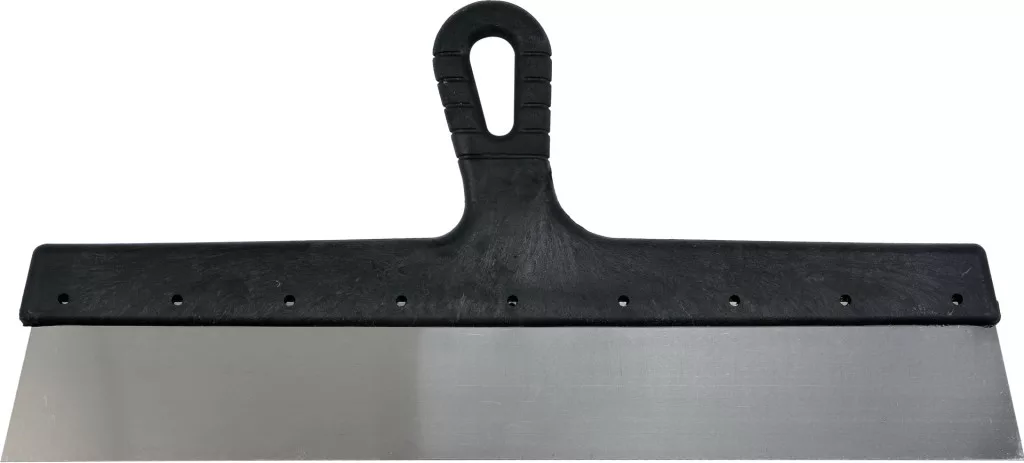 Spakli, rozsdamentes acélból, 450 mm-es, ergonomikus és tartós műanyag fogantyúval.