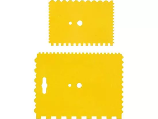 Erős és rugalmas műanyagból készült. A ragasztó egyenletes eloszlatására tervezték szőnyegek, csempék, panelek stb. alá - Különböző méretű fogakkal rendelkeznek a megfelelő vastagságú felhordás megkönnyítése érdekében.
