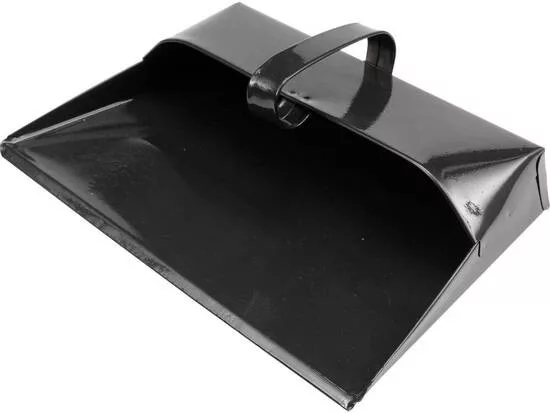Angol típusú, teljes egészében lakkozott fémlemezből készült szemétlapát, kényelmes bádog fogantyúval.