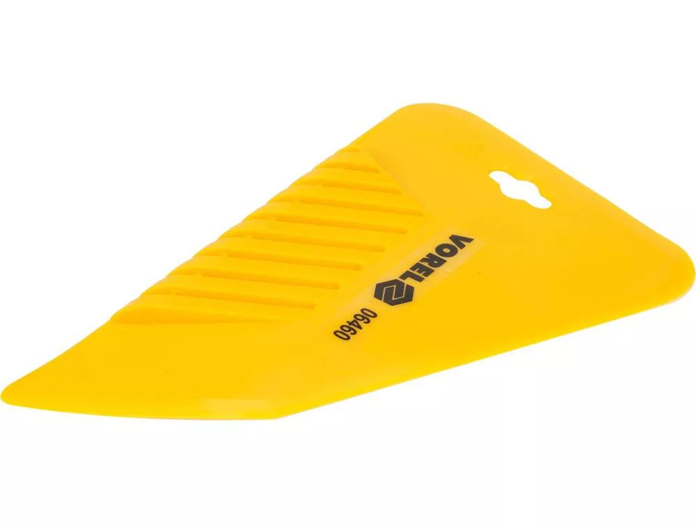 A ragasztott tapéta préseléséhez. PE polietilénből készült, puha, rugalmas, háromszög alakú, ferdére vágott csúcsú. A hegyes munkaéle tapétavágóként használható.