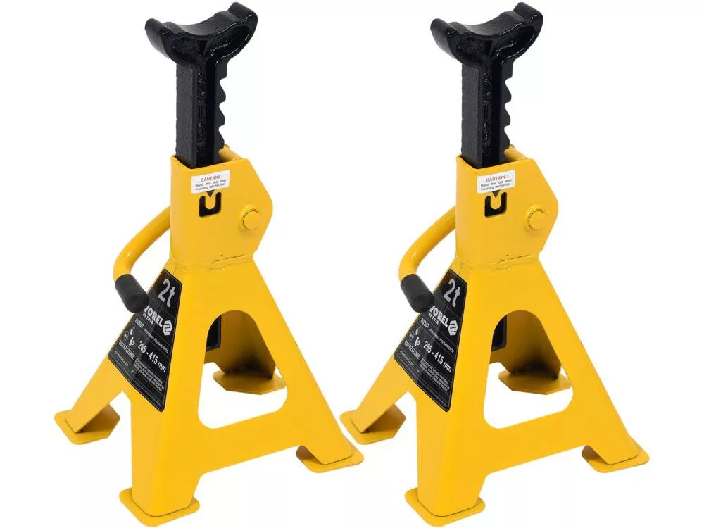 Az autóemelő állványok négy lábbal rendelkeznek, magasságuk 265-390 mm között állítható, teherbírásuk 2 tonna. Autóemelő állványok korróziógátló bevonattal. Tökéletes az emelő súlyának tehermentesítésére.