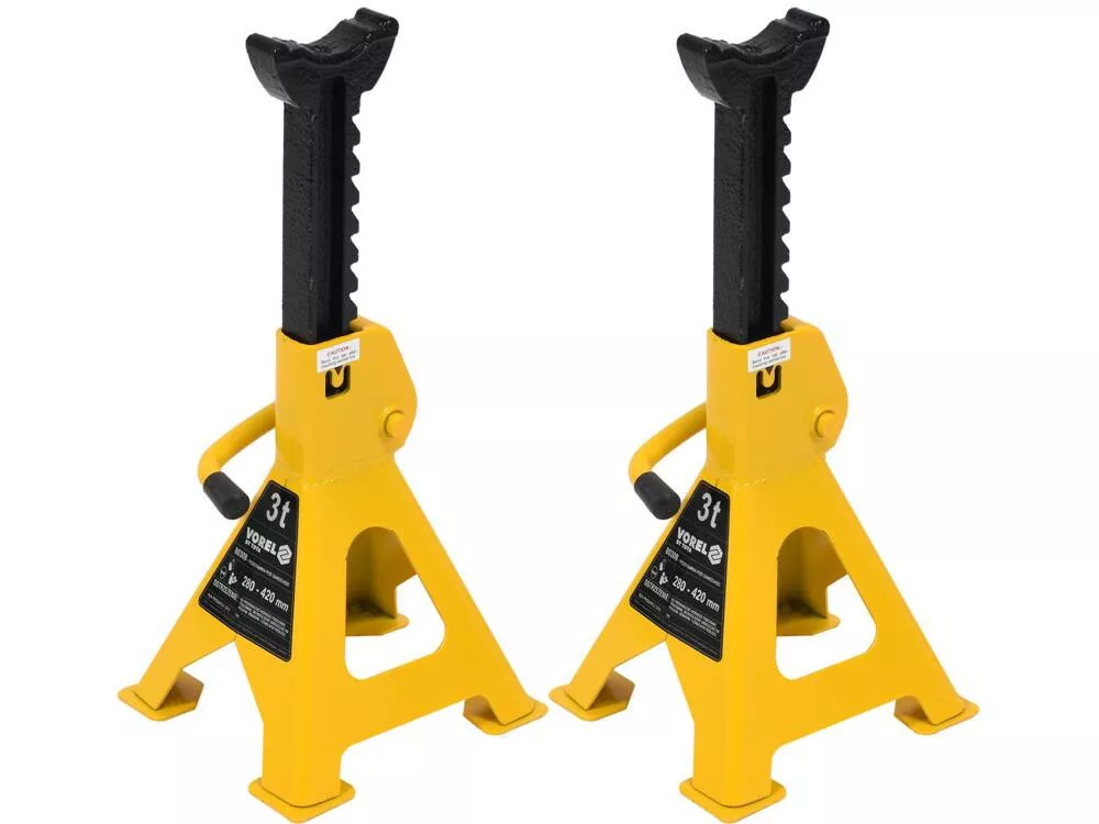 Az autóemelő állványok négy lábbal rendelkeznek, magasságuk 275-415 mm között állítható, teherbírásuk 3 tonna. Autóemelő állványok korróziógátló bevonattal. Tökéletes az emelő súlyának tehermentesítésére.