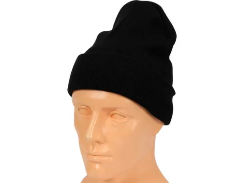 Téli sapka fekete színben, meleg és rugalmas kötött anyagból. Univerzális méret, tökéletesen alkalmazkodik bármilyen fejformához.