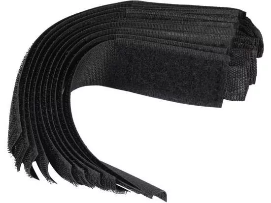 Kábelek rögzítésére tervezett tépőzáras kötőelemek. Tartós, nejlonból és PU-bevonatú poliészterből készült. A tépőzár lehetővé teszi a többszöri rögzítést és a kényelmes beállítást. 10 darab 150 mm-es szalag