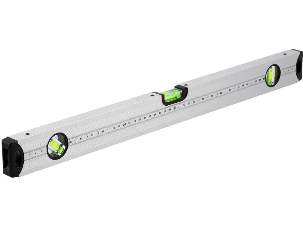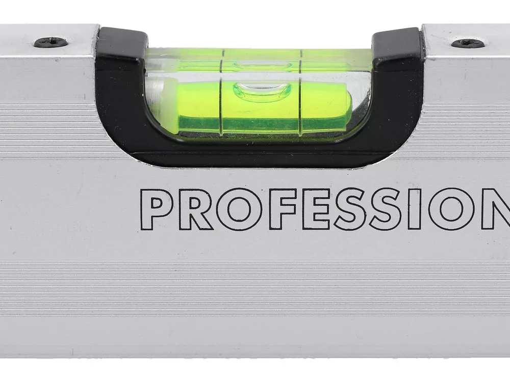 A szint eloxált alumíniumprofilból készült. Három üveglapja van, amelyek függőleges, vízszintes és 45 fokos szöget jeleznek. A vízmérték végei speciális ütéscsillapító ütközőkkel vannak ellátva.