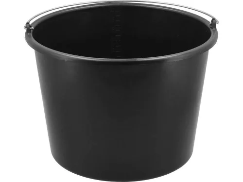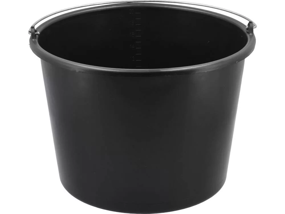 20 literes műanyag vödör. Széles körben használják felújítási és építkezési munkálatoknál, valamint a háztartásban. A tömör fogantyú acélhuzalból készült.