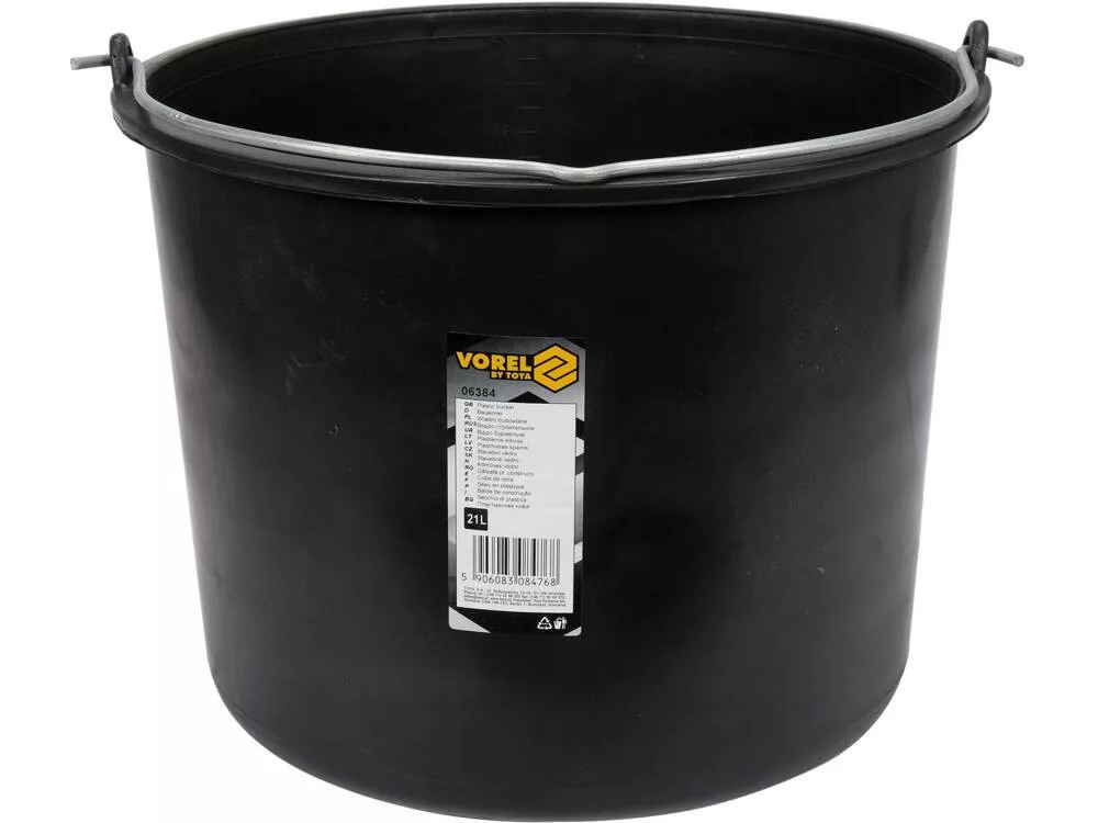 21 literes építkezési vödör, fém fogantyúval. Hasznosnak bizonyul száraz és nedves habarcsok keveréséhez és szállításához. Kiváló minőségű, erős és rugalmas műanyagból készült, amely ellenáll a repedéseknek és töréseknek.