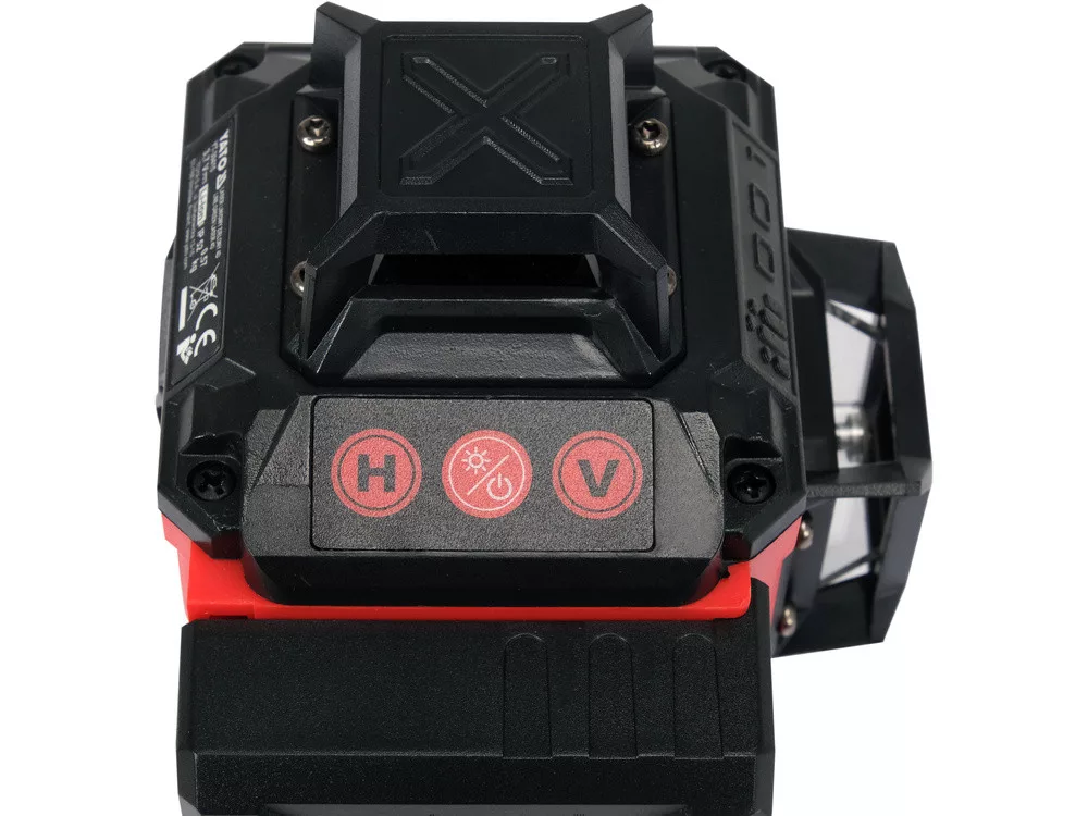 Lézeres szintező, zöld fénnyel, alumínium állvánnyal, két újratölthető akkumulátorral.