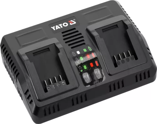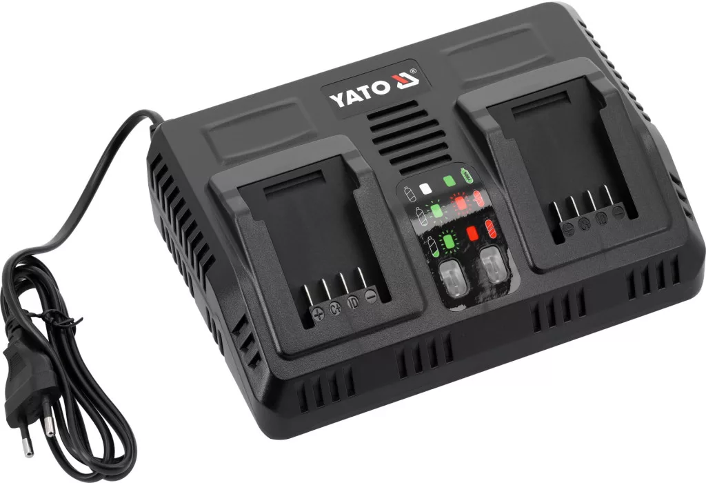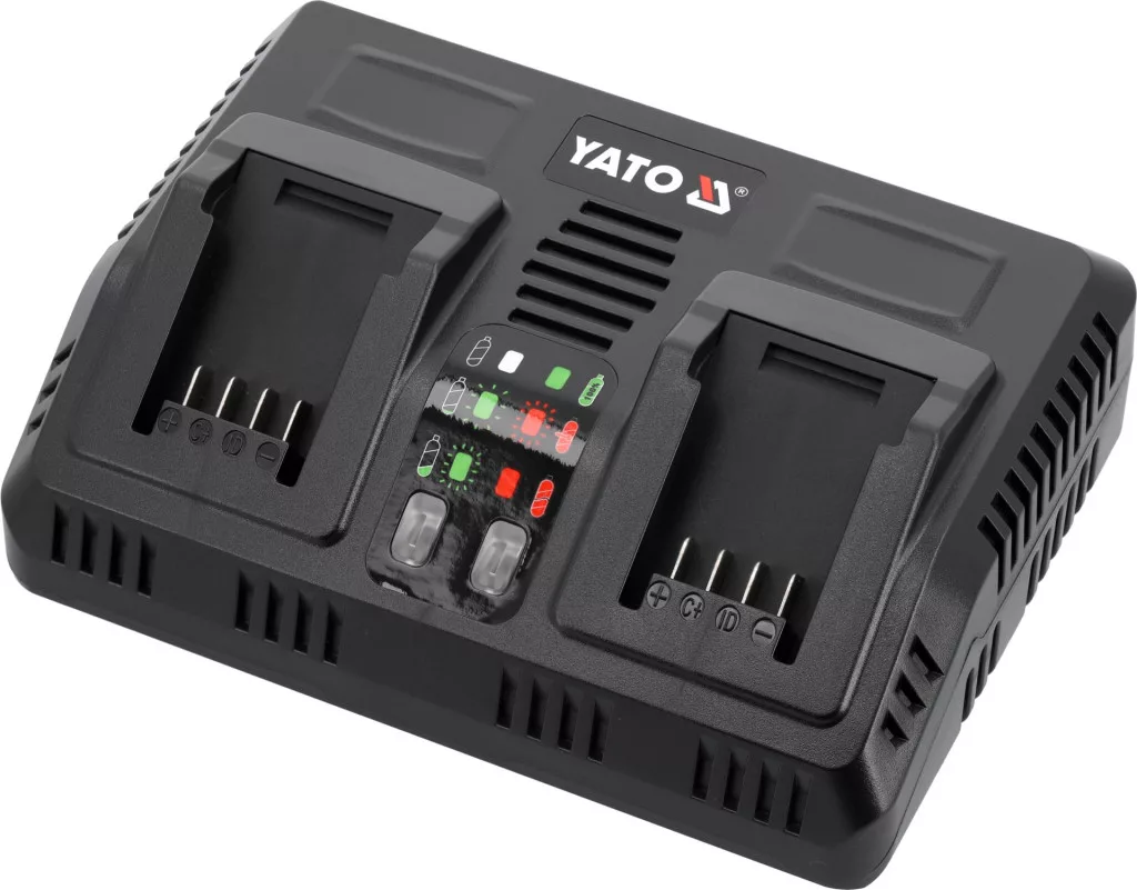 Minden YATO 18 voltos akkumulátorhoz. A beépített akkumulátor hatékonyság- és hőmérséklet-vizsgáló rendszer gondoskodik az akkumulátor élettartamáról. Nem kezdi el a töltést, ha a cellák túl melegek.