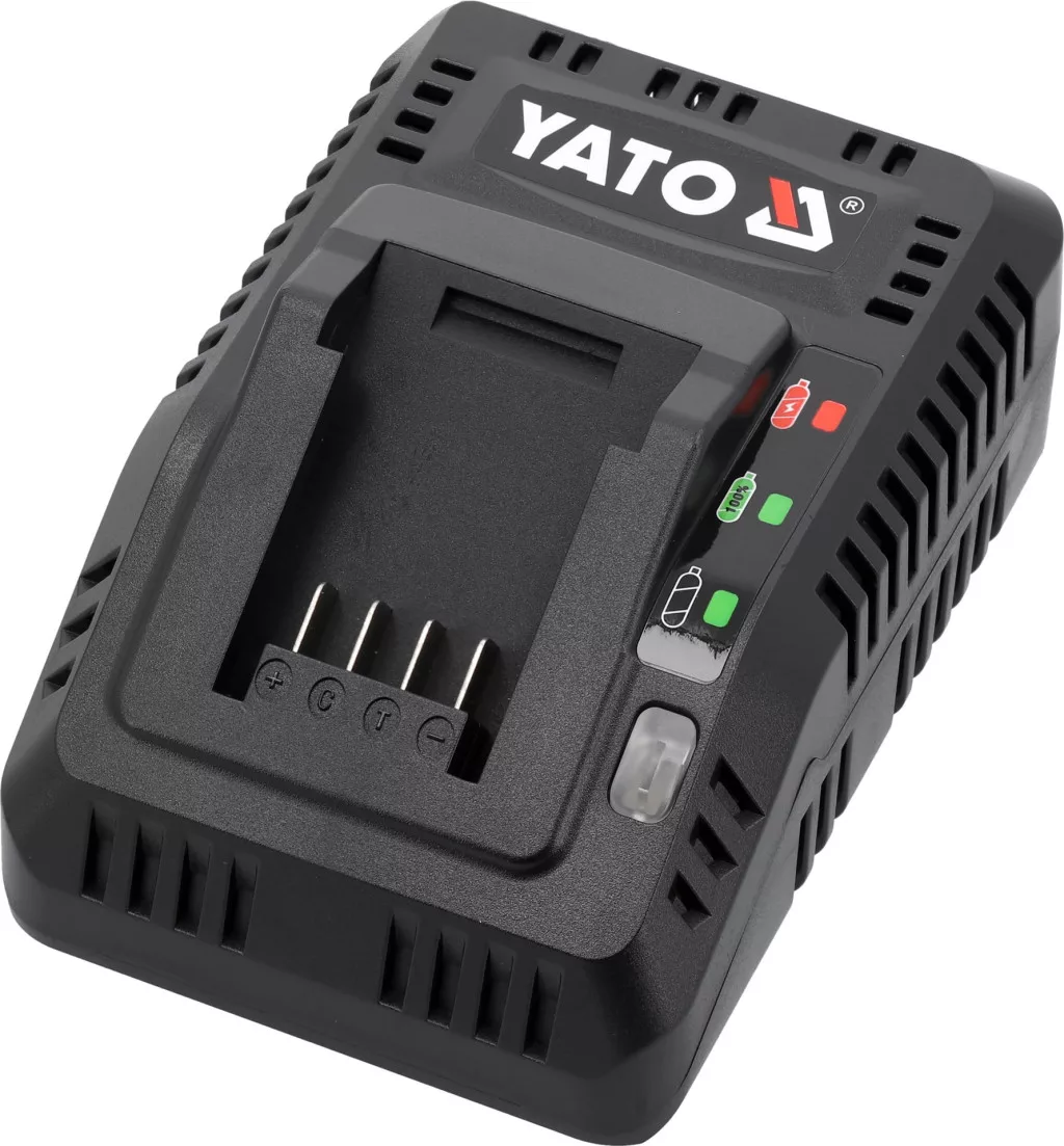 Minden YATO 18 voltos akkumulátorhoz. A beépített akkumulátor hatékonyság- és hőmérséklet-vizsgáló rendszer gondoskodik az akkumulátor élettartamáról. Nem kezdi el a töltést, ha a cellák túl melegek.