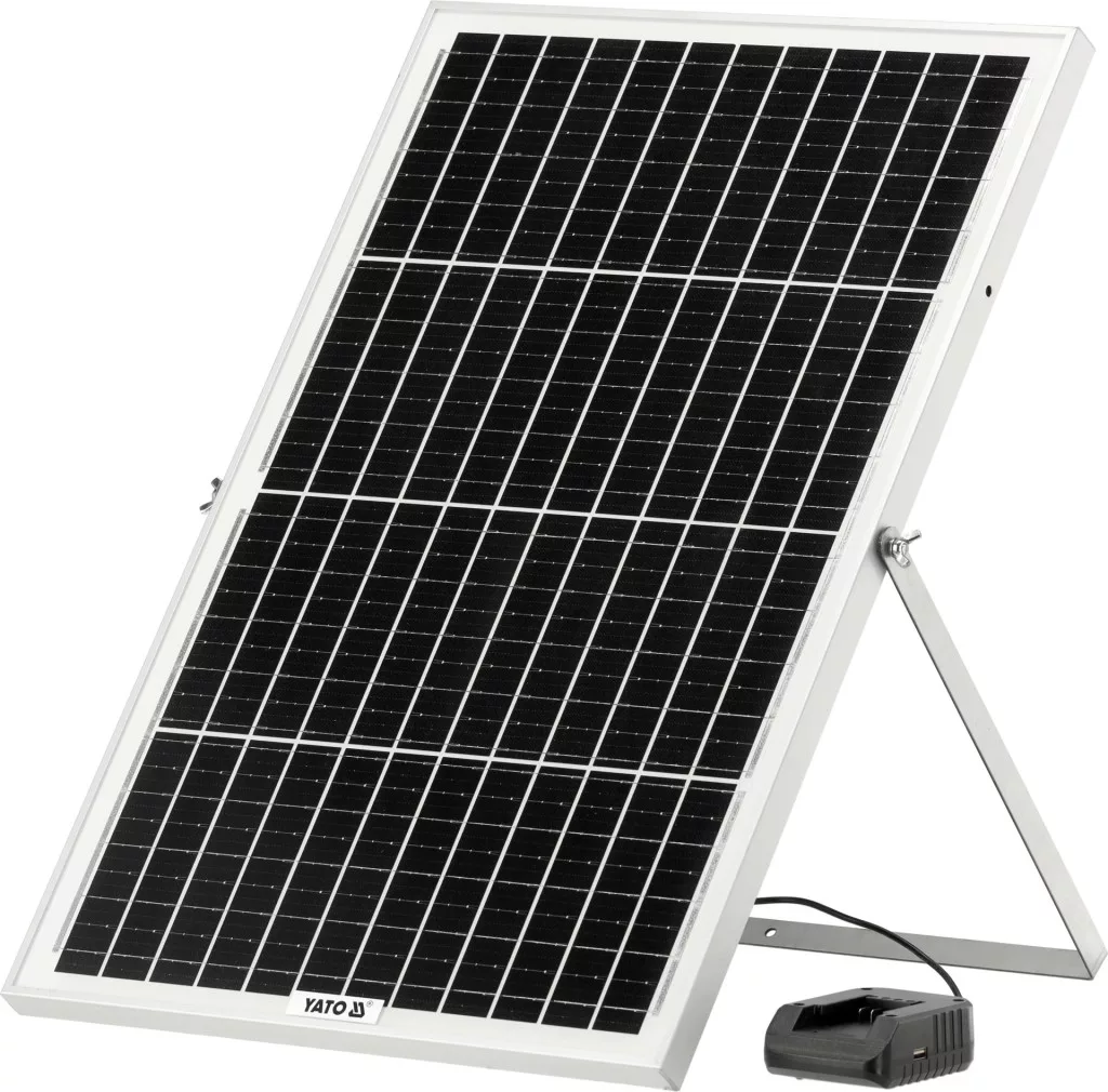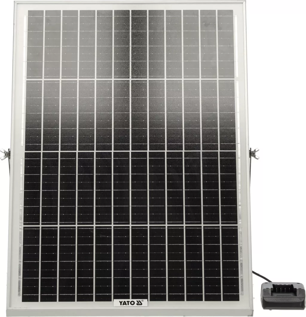 YATO 18V-os rendszerű akkumulátortöltő, amely csatlakoztatható az autó szivargyújtó aljzatához vagy 50W-os fotovoltaikus cellához. Kiválóan alkalmas kempingezéshez, kerti parcellákhoz, hajókhoz és bárhová, ahol nincs hozzáférés a hálózathoz