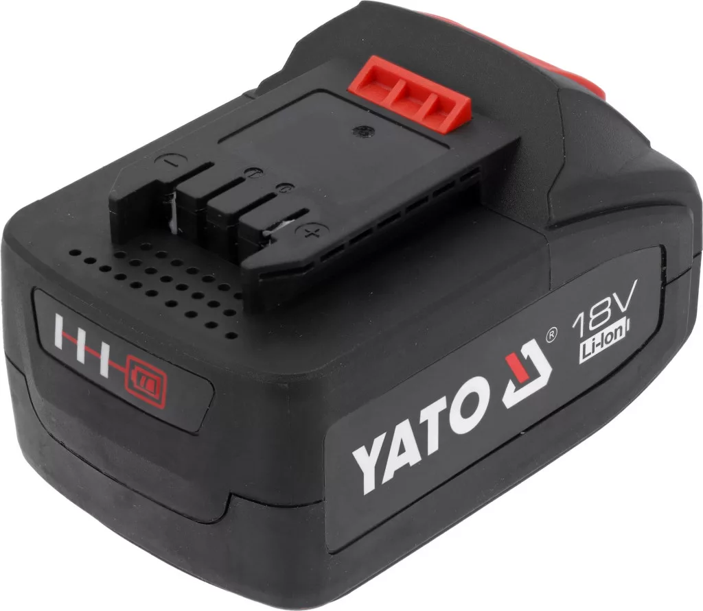 Akkumulátorcsomag a YATO platform 18V-os elektromos szerszámsorozatának energiaellátásához.