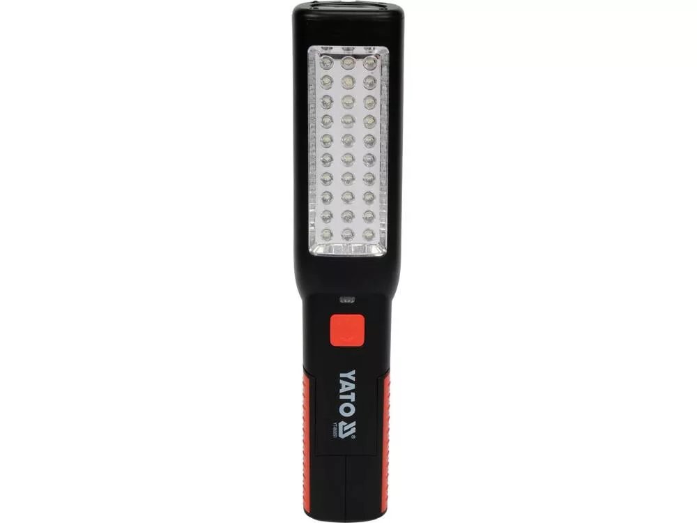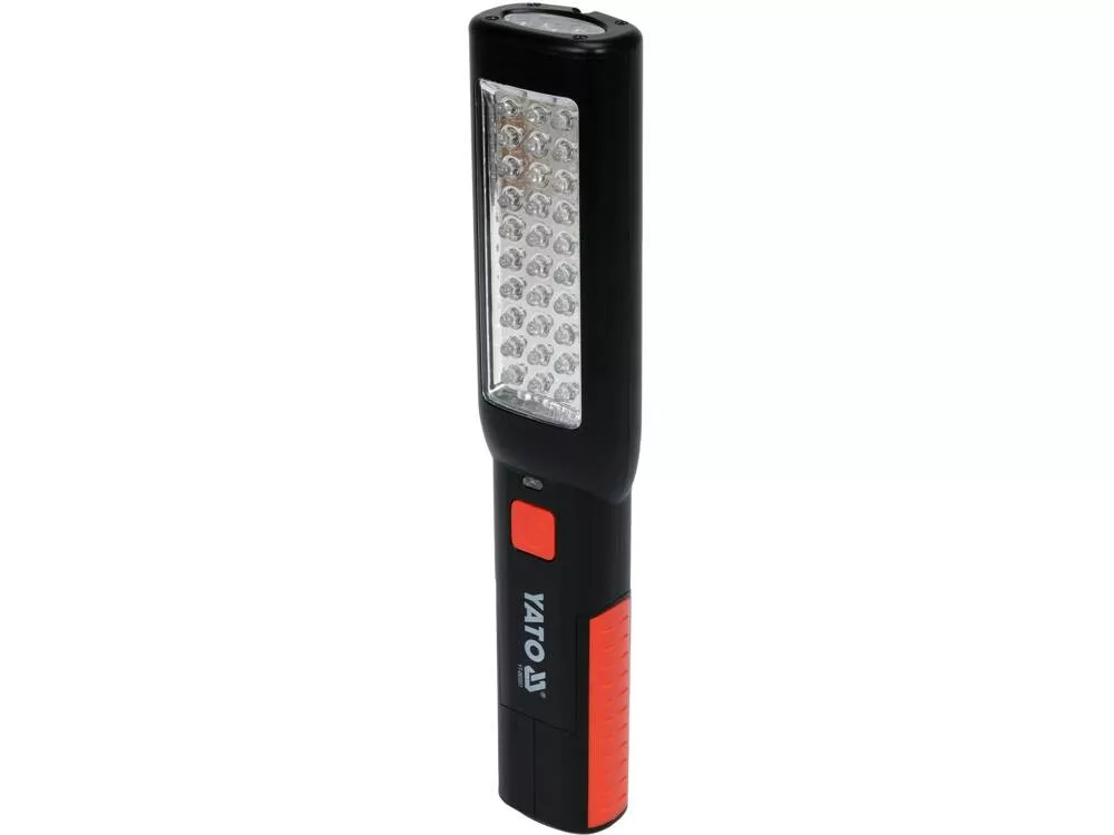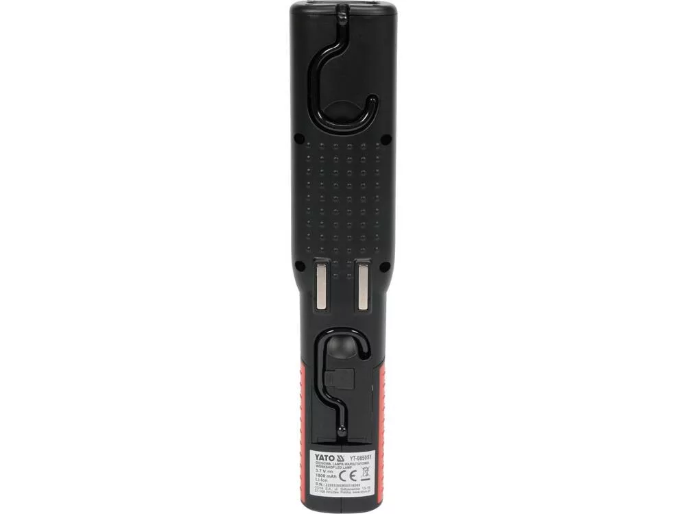 YATO Műhelylámpa 100lm-es főlámpával és 45lm-es zseblámpával. A modell egy 1800 mAh kapacitású lítium-ion akkumulátorral van felszerelve, amely legalább 3,5 órás folyamatos működést biztosít . Tartós ABS anyagból készült, amely IK05 mechanikai védelmi osztályt biztosít. A forgatható test , 2 horog és 2 mágnes lehetővé teszi a fénysugár megfelelő beállítását. A bestseller YT-08505 folytatása