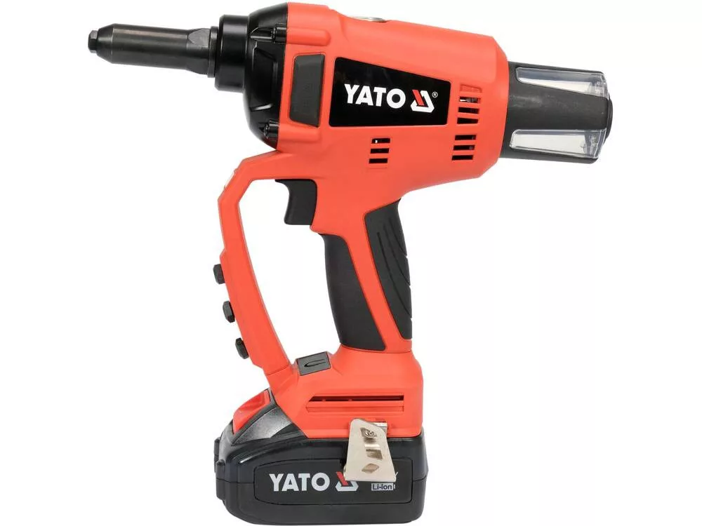 A szegecselőgépet a Yato 18 V-os rendszerű akkumulátorok táplálják, amelyek közös platformot biztosítanak a berendezések széles skálájának, például ütvecsavarozó gépeknek, sds+ ütvefúró gépeknek, sarokcsiszolóknak stb.
