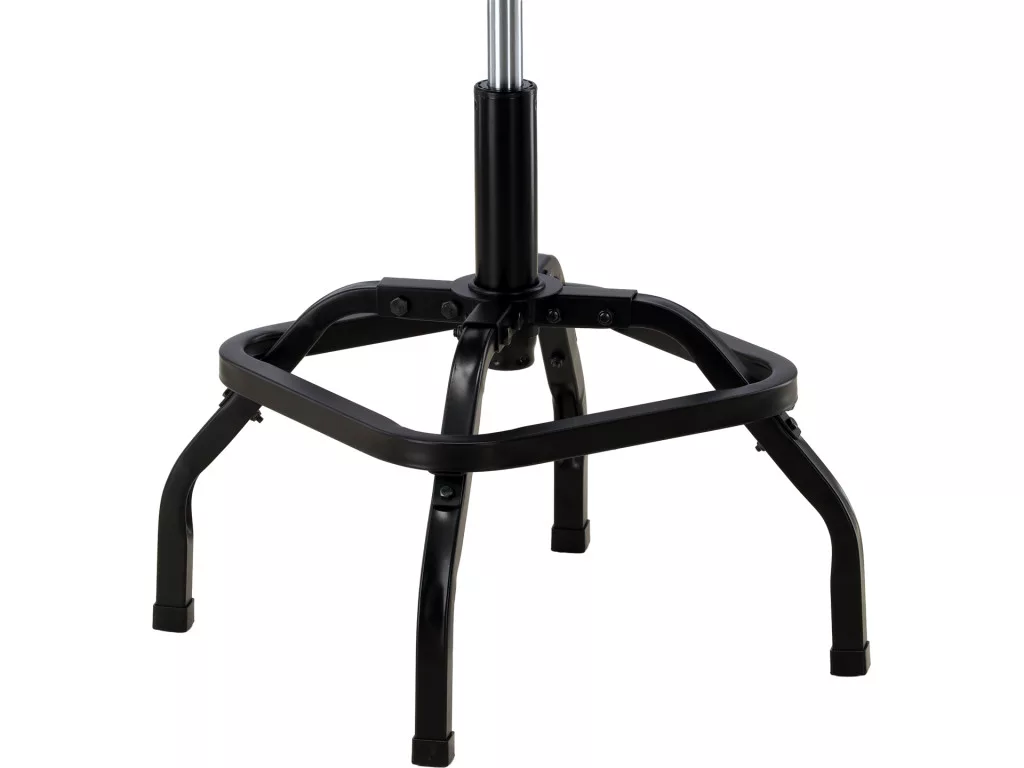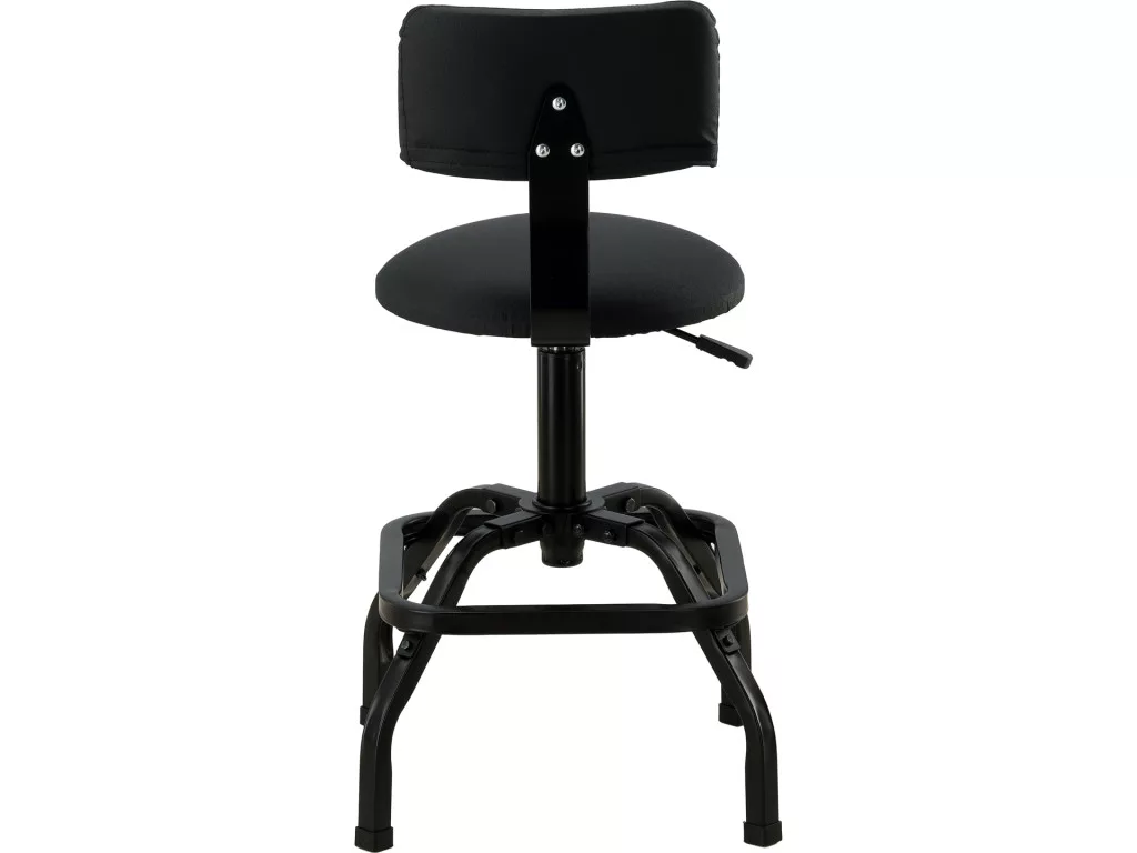 Forgatható műhelyszék magasság- és háttámla-beállítással, 360°-ban forgatható ülés, stabil acélszerkezet, 135 kg teherbírás, lábtámasz, 4 stabil láb, fekete.
