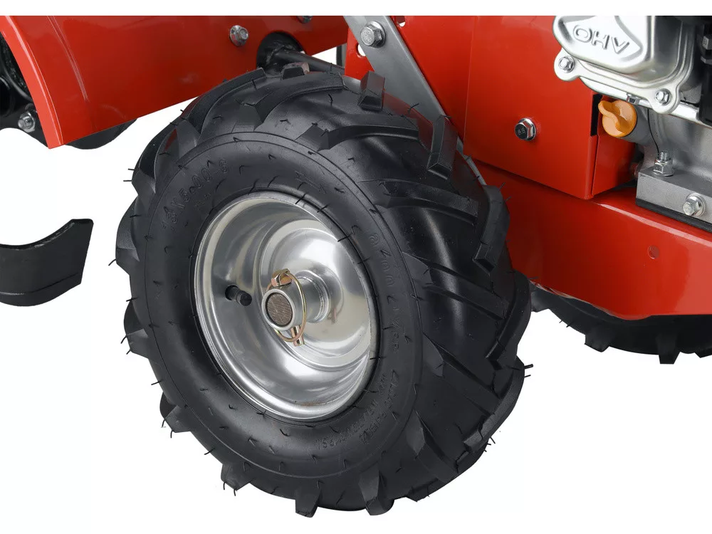 A rotációs kapa acélházzal rendelkezik, amely védi káros külső behatásoktól. A két felfújt meghajtókerék megkönnyíti és sokkal könnyedebbé teszi a talajon való mozgást, így a nagyobb területek gyorsabban megmunkálhatók vetéshez vagy ültetéshez az első áthaladáskor.
