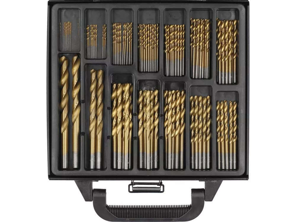 Csigafúró készlet 99 részes, titán-nitrid bevonattal, hengeres szárral.