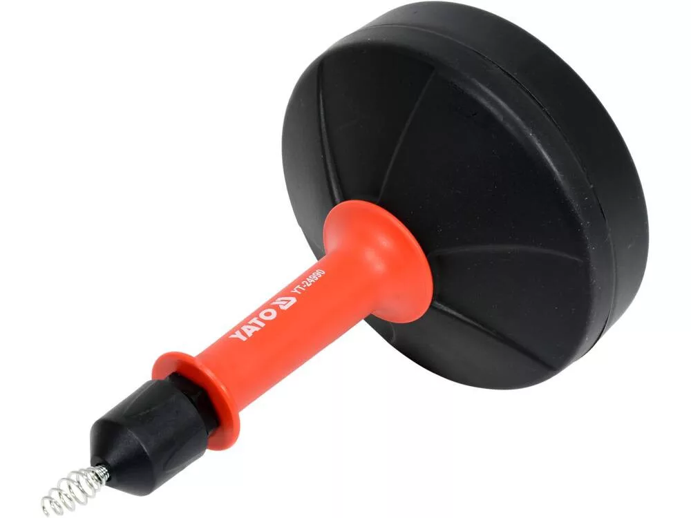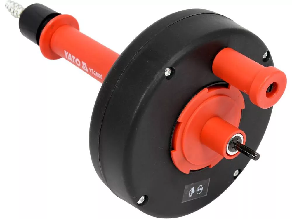 YATO Fúrógépre csatlakoztatható spirál szennyvízcsövek dugulásainak feloldásához. Lehetővé teszi az összes dugulás hatékony eltávolítását, beleértve azokat is, amelyeket vegyi anyagokkal nem lehet eltávolítani. Különösen hasznos olyan dugulások esetén, amelyek teljesen elzárják a lefolyókat. Működtetése: A forgómozgás fúrógéppel végzendő, a spirál előtolása, és visszahúzása kézzel végzendő.