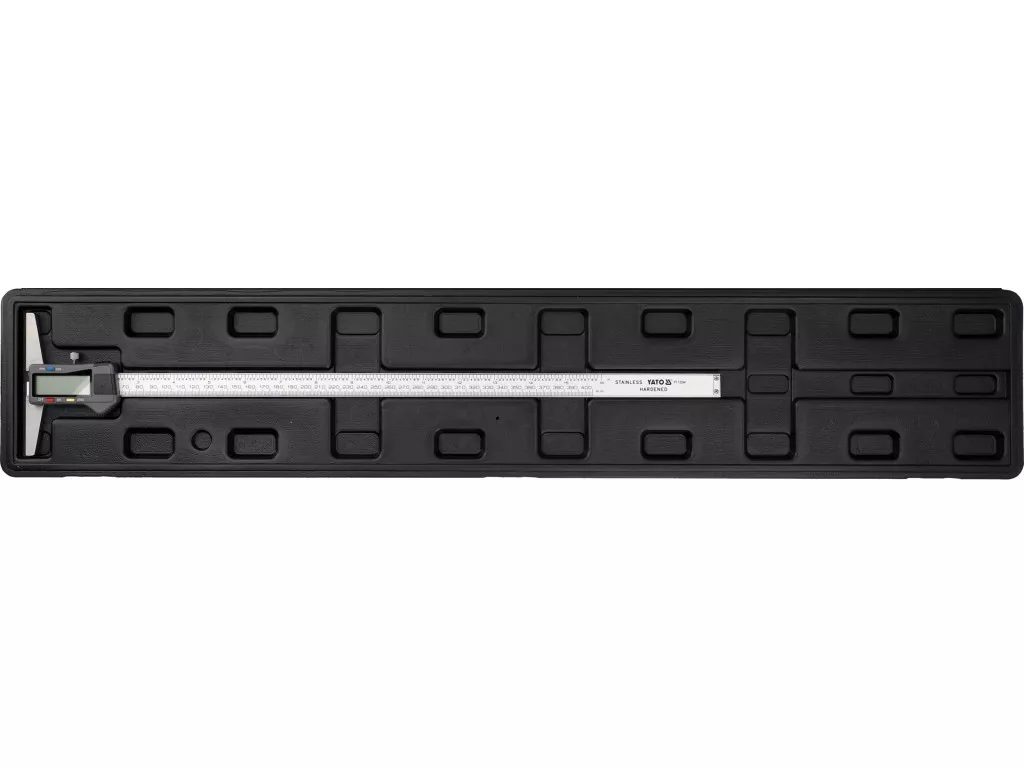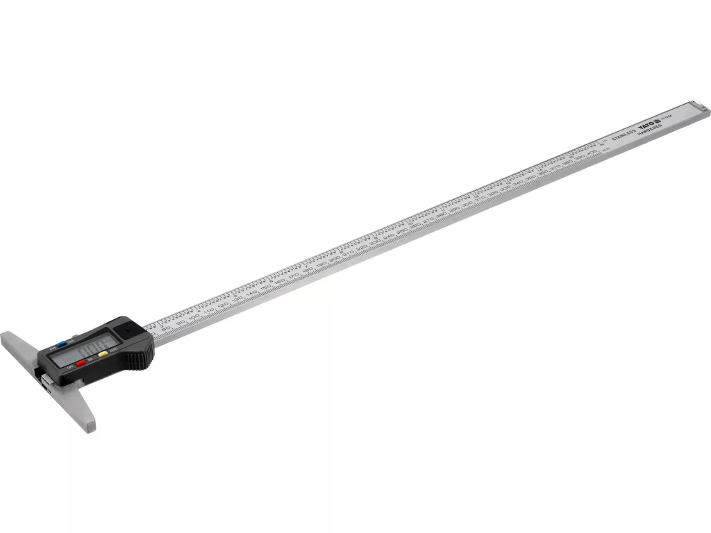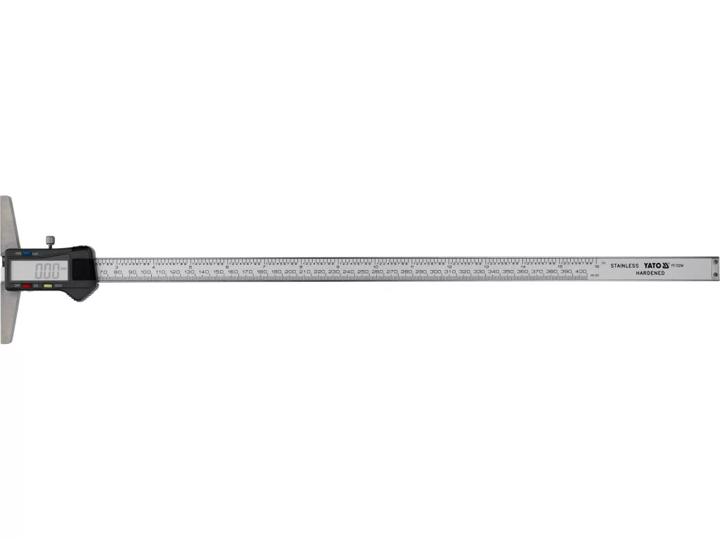 Elektronikus mélységmérő pontos és megbízható eszköz lyukak, bevágások, hornyok és rések mélységének mérésére, 0–150 mm vagy 0–400 mm változatban, ±0,03 mm, LCD, rozsdamentes acél és ABS ház, SR44 elem, tokban.
