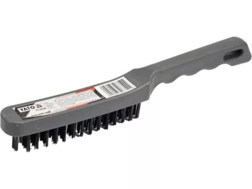 Drótkefe 4 soros, horganyzott, rugalmas acélhuzalból, tartósan műanyag testbe ágyazva.
