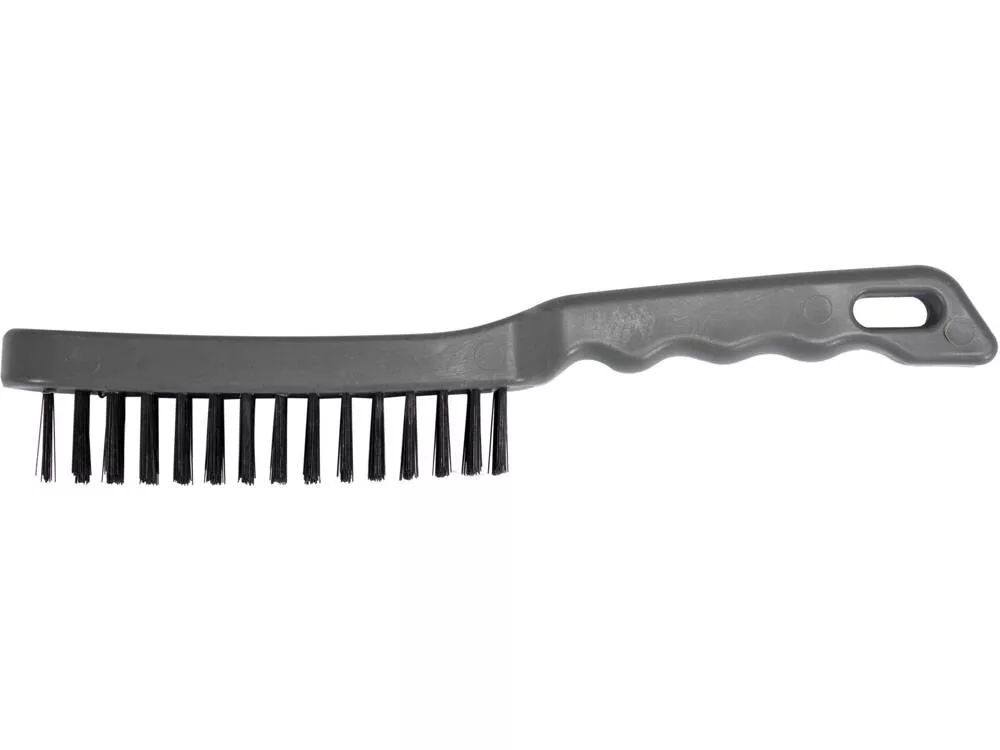 Drótkefe 5 soros, horganyzott, rugalmas acélhuzalból, tartósan műanyag testbe ágyazva.