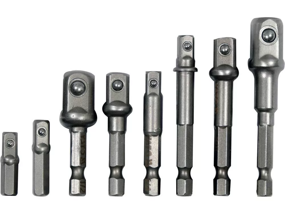 Dugókulcs adapter készlet 8 részes 1/4" Hex -> 1/4", 3/8", 1/2" strapabíró acélból.