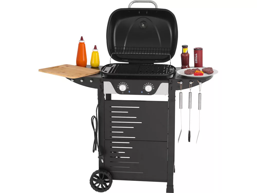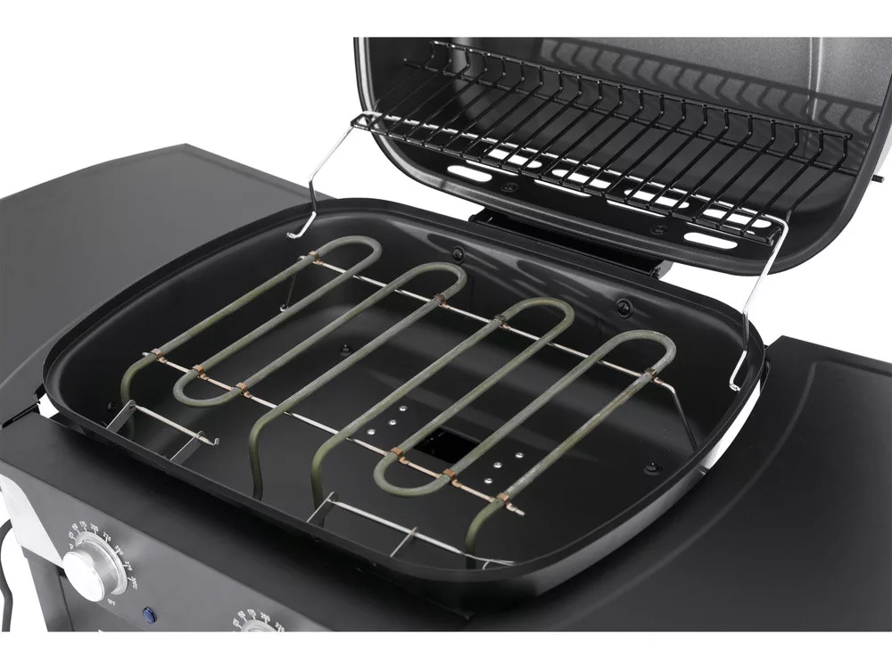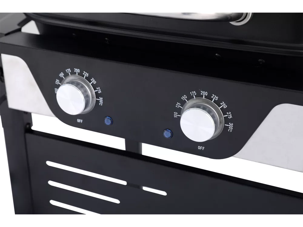 Elektromos álló grill, porszórt bevonattal, ellenáll az időjárási viszonyoknak, 2 zónás hőmérsékletszabályozással.
