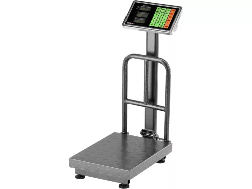 Ez a tartós elektronikus platform-skála 150 kg-ig terhelhető, és pontos mérési eredményt ad 50 g-os mérési pontossággal. A domborított mérőfelület karbonacélból készült, mérete 300 x 400 mm, felületvastagsága 1 mm. A test egy acélkeretből készült és porvédő burkolattal van ellátva, amely védi a komponenseket a szennyeződésektől és a mechanikai sérülésektől. Az összeszereléshez és a szállításhoz a kialakítás szétszedhető és egyszerűen kezelhető; a készülék tömege mindössze 6,6 kg, ami megkönnyíti a hordozást és a helyszínre helyezést.