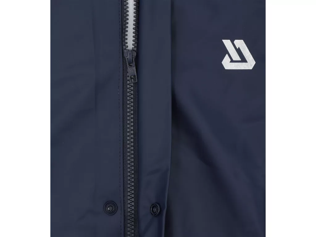 Esőkabát nyújtható poliészterből, PU bevonattal, vízálló és könnyű. Két nagy zseb, fedéllel és patenttal. Cipzár fedővel, patenttal zárható. Kapucni rejtett, állítható húzózsinórokkal. Szélálló mandzsetták, hónalj alatti ventillációs nyílások, belső hátsó háló az áteresztésért.