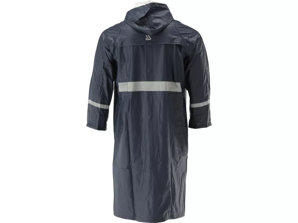Ez az esőkabát rugalmas anyagú, PU bevonatú poliészterből készült, amely vízlepergető tulajdonságokkal és könnyű, nem korlátozó viselettel jár. A praktikus két nagy zseb, a zárható cipzáros kialakítás kapucnival és a szélálló mandzsetták mind hozzájárulnak a kényelmes és funkcionális viselethez. A hónalj alatti ventillációs nyílások és a hát belső, hálószövéses rész pedig a jobb légáteresztést szolgálják, biztosítva a fokozott komfortot.