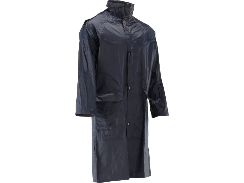 A kabát teljes anyaga 100% poliészter PVC bevonattal van ellátva, ami vízálló tulajdonságot biztosít és hatékony védelmet nyújt eső és nedvesség ellen. A PVC bevonatú poliészter anyag háttere lehetővé teszi a kabát szerkezeti merevségét és vízállóságát, miközben a viselet közbeni kényelmet előtérbe helyezi.