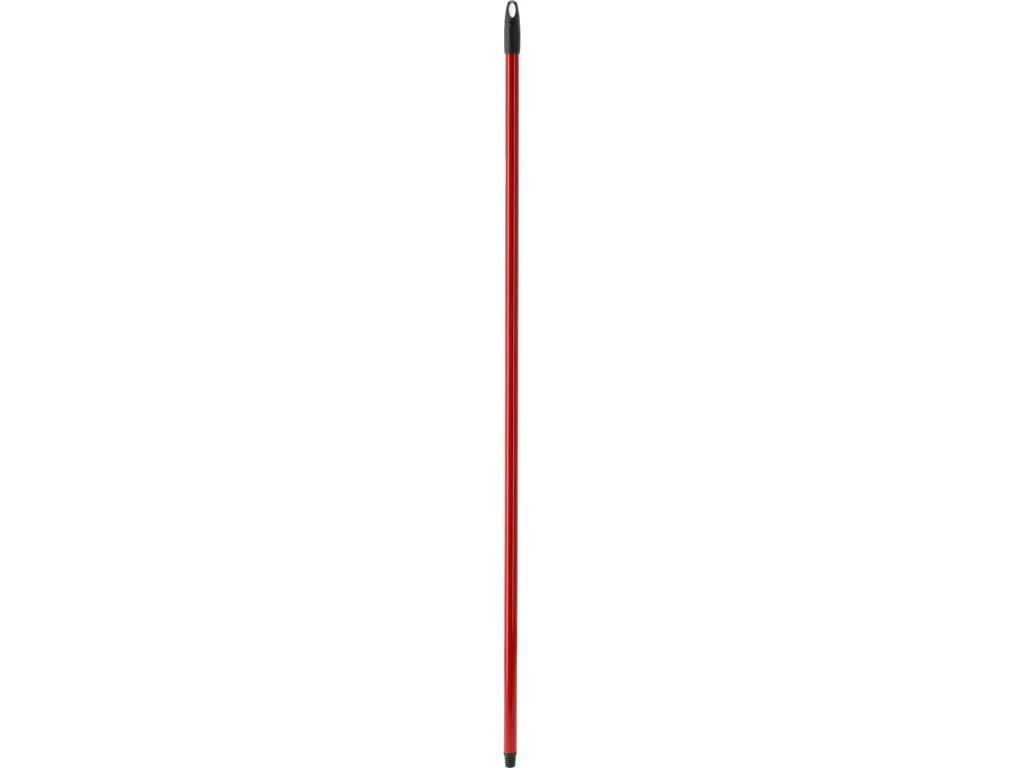 Szilárd nyél acéllemezből, műanyag bevonatú, kúpos menet, seprűkhöz YT-86854–YT-86857, hossz 140 cm, Ø 24,5 mm, lemezvastagság 0,34 mm, menetmagasság 24 mm, kúpos 19–22 mm, piros.