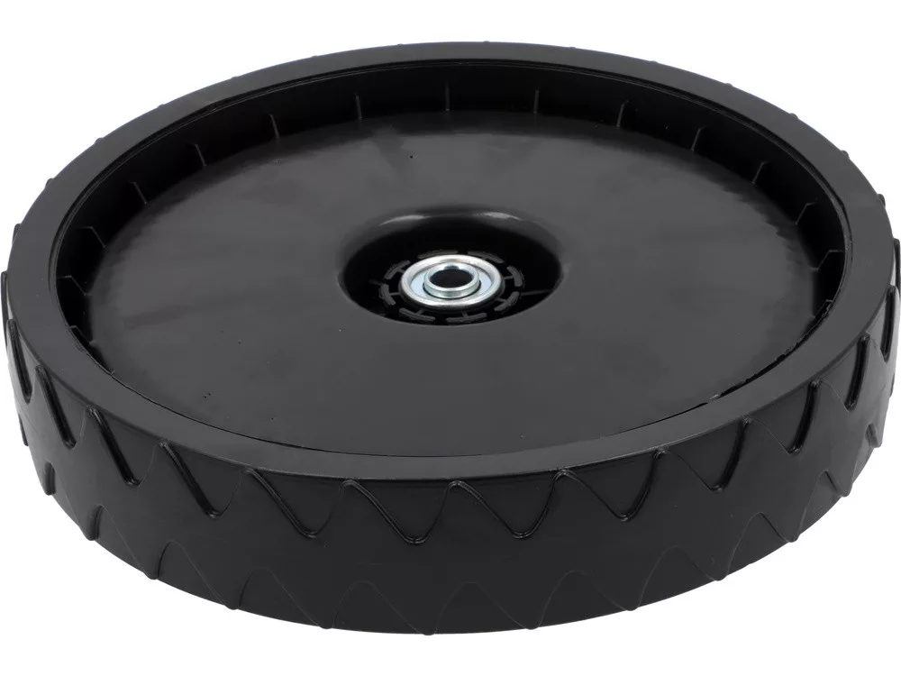 Fűnyíró kerék, tartós PP és PVC műanyagból készült 275 mm-es átmérővel.