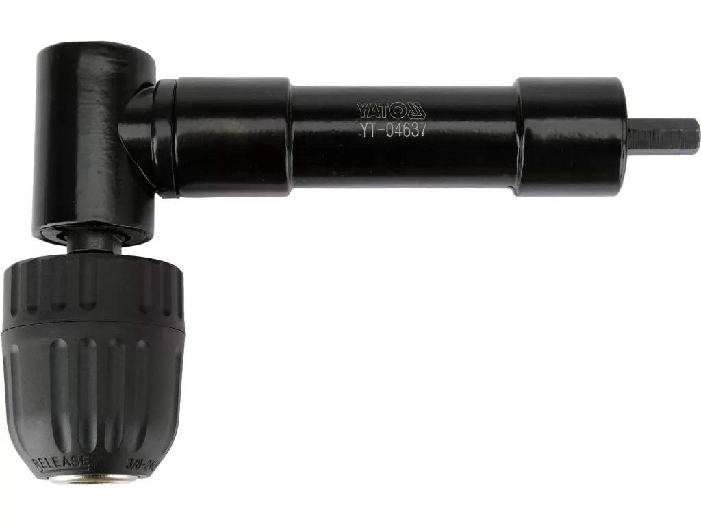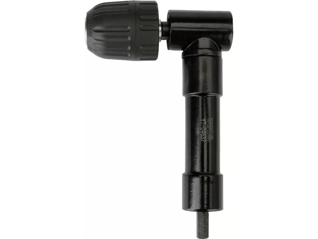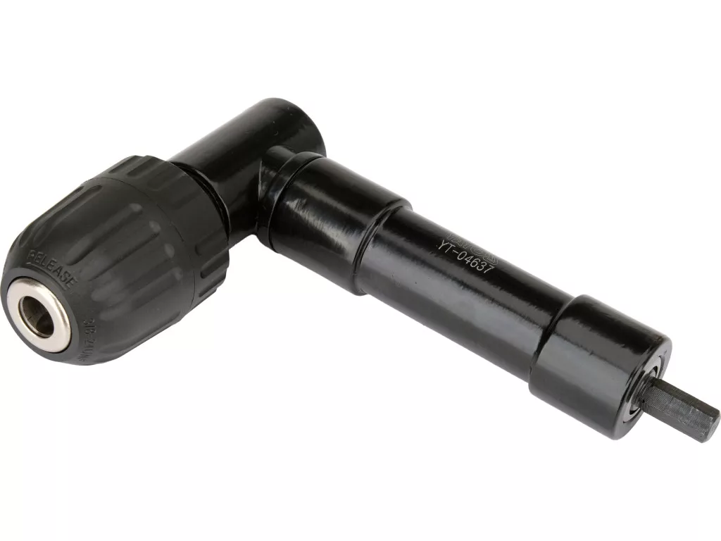 90°-os szögű adapter tokmánnyal - praktikus kiegészítő, amely lehetővé teszi a 90°-os munkát, különösen szűk helyeken. Kényelmes fúrást és csavarozást tesz lehetővé ott, ahol a szerszám standard beállítása lehetetlen.