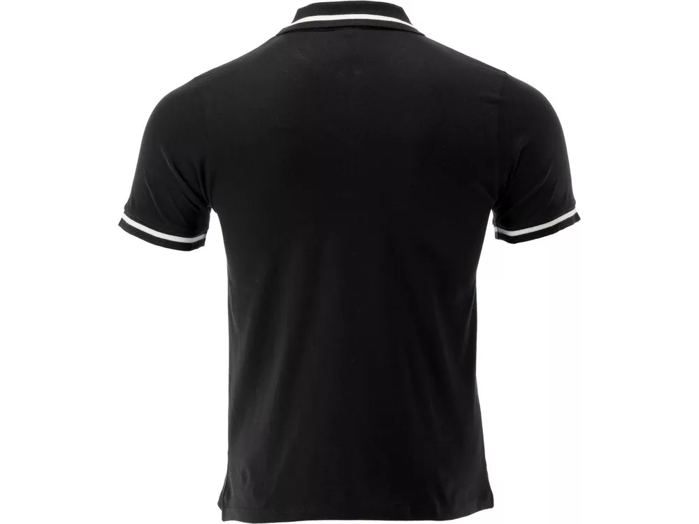 Környakas póló, 100% pamut,ráncmentes bordás kötött anyagból készült gallérral, megbízható overlock varratokkal, fekete színű.