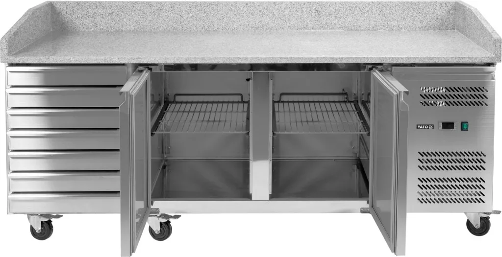 Yato Gastro 2 ajtós hűtőasztal 7 fiókkal, gránit munkalappal 580l