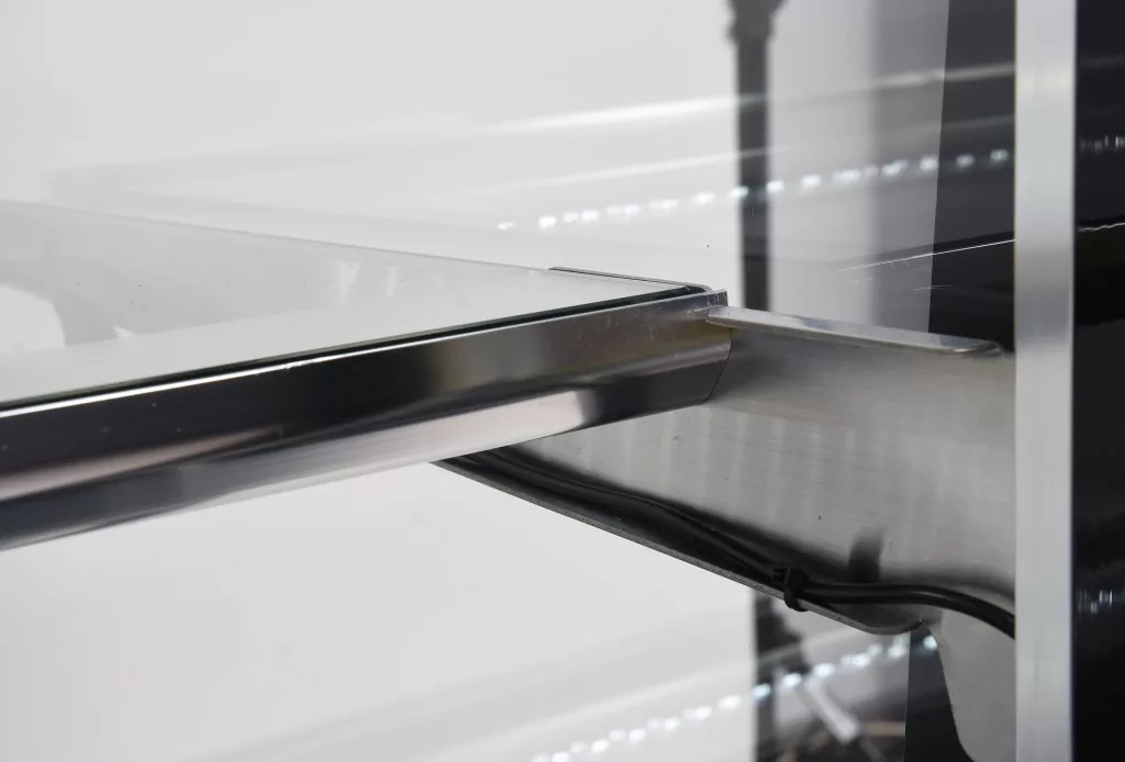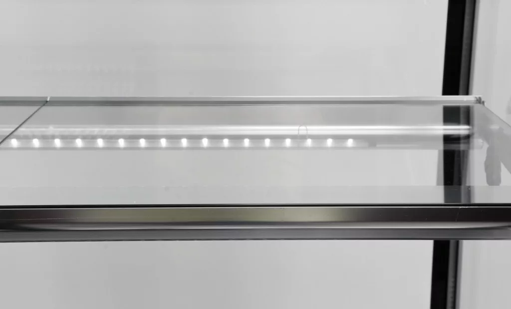 A hűtővitrin sütemények, koktélok, joghurtok és különféle frissítő italok, valamint saláták és apró falatok bemutatására szolgál.