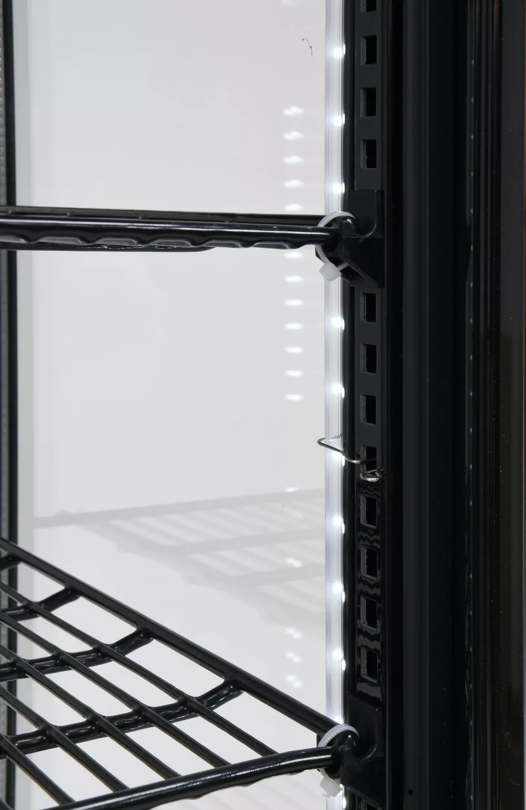 Szabadon álló hűtővitrin, űrtartalom 78 liter, fekete, méretei 428x386x960mm.