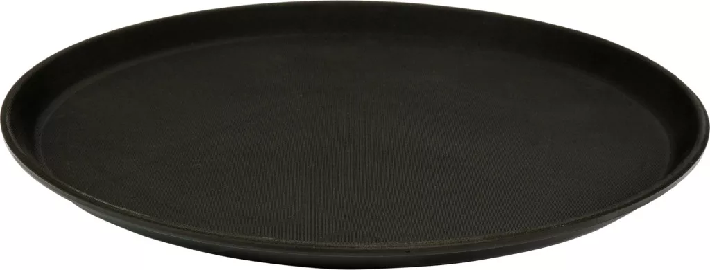 Csúszásgátló, kör alakú pincértálca, átmérője 405 mm. A csúszásgátló tálcák a vendéglátóiparban dolgozó pincérek nélkülözhetetlen eszközei. Előállításukhoz többrétegű üvegszálat használtak, amely nagy merevséget és mechanikai szilárdságot garantál.
