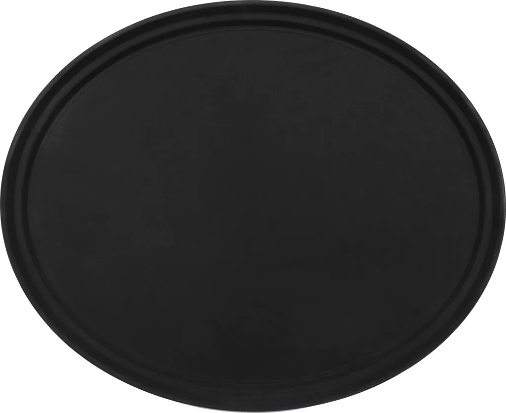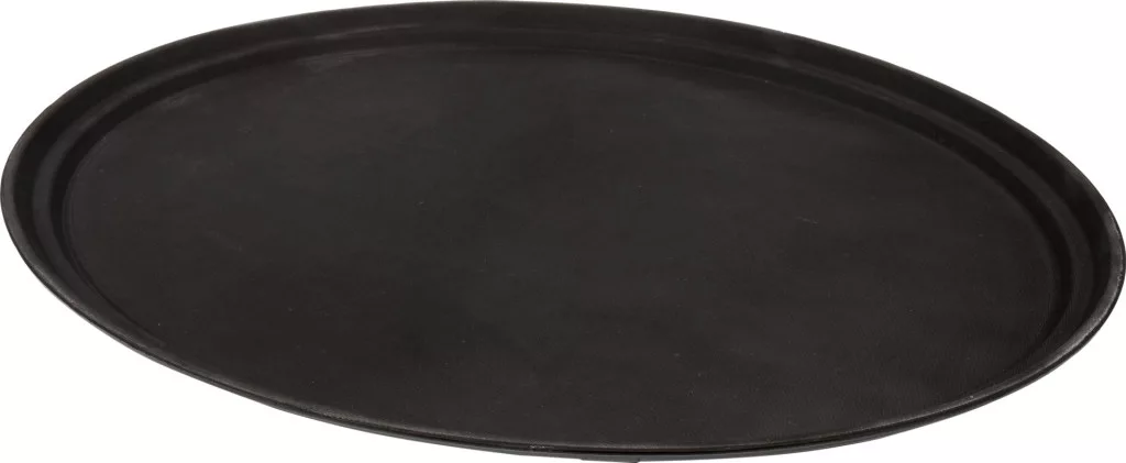 Csúszásgátló, ovális alakú pincértálca, átmérője 600X735 mm. A csúszásgátló tálcák a vendéglátóiparban dolgozó pincérek nélkülözhetetlen eszközei. Előállításukhoz többrétegű üvegszálat használtak, amely nagy merevséget és mechanikai szilárdságot garantál.