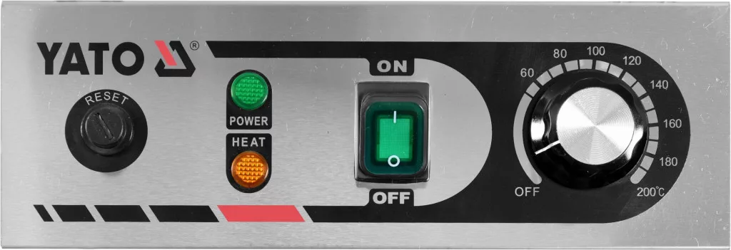 A 3,3 kW-os fűtőtestet a vezérlőpanelen elhelyezett potenciométer vezérli.