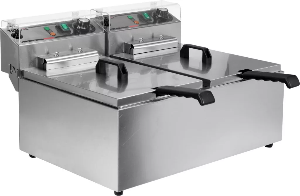 Kétrekeszes olajsütő 2x11,5 literes űrtartalommal.