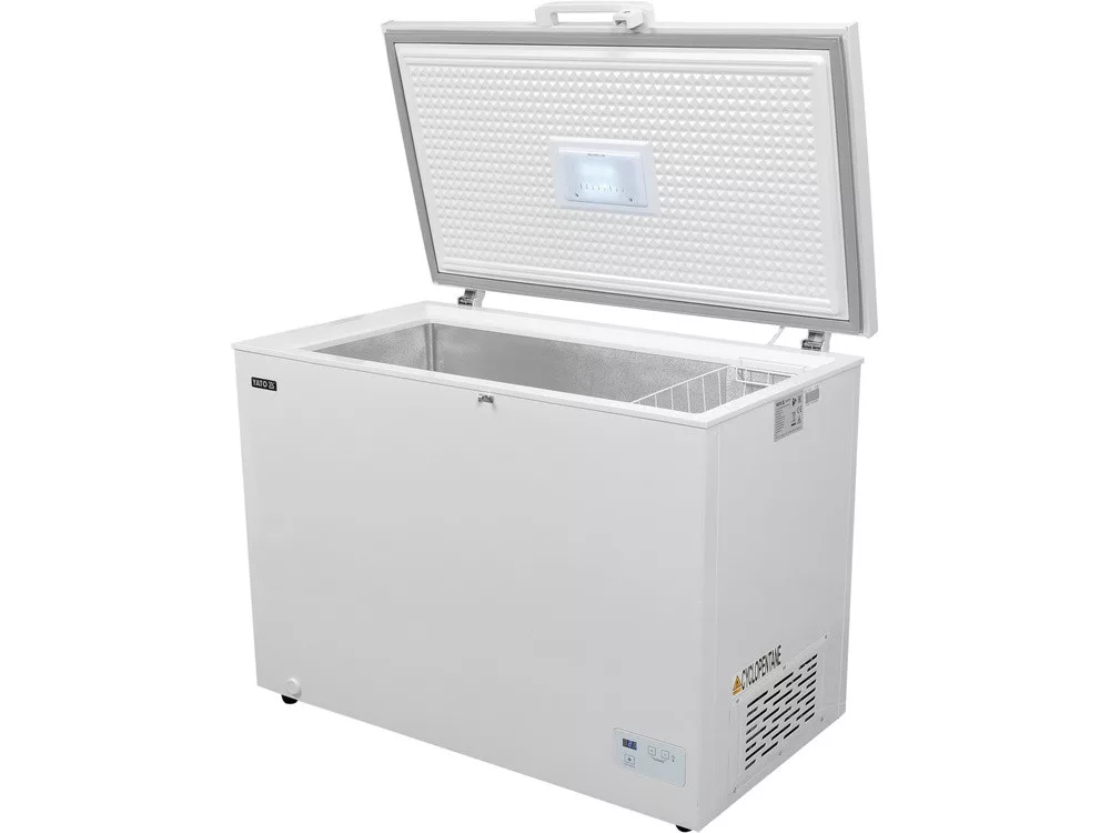 Fagyasztóláda 282 literes, digitális kijelzős, önzáródó csuklós ajtóval.