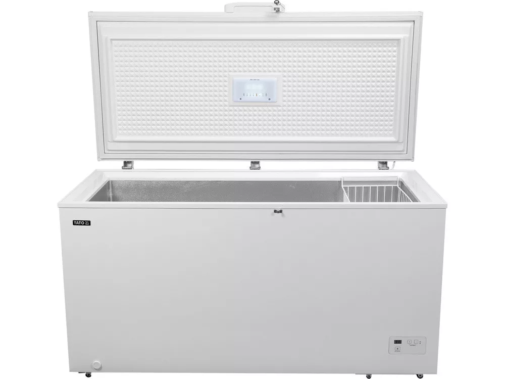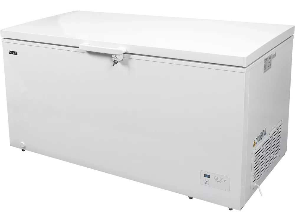 Fagyasztóláda 435 literes, digitális kijelzős, önzáródó csuklós ajtóval.