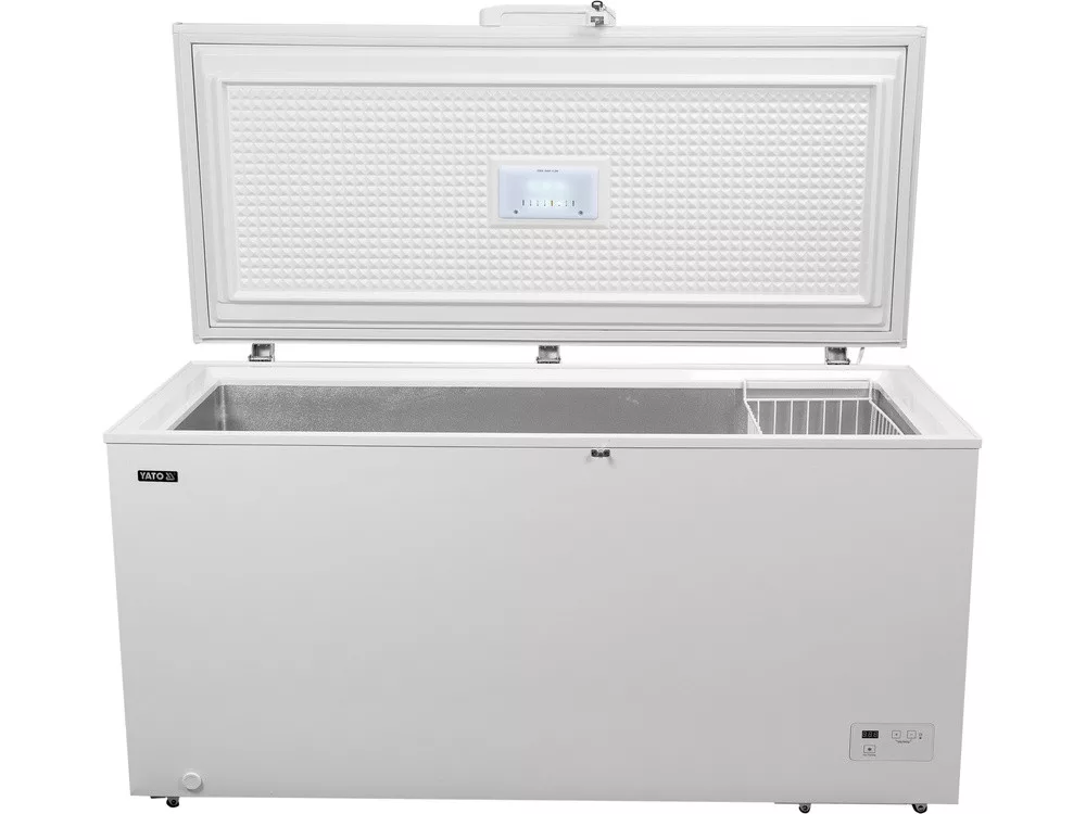 Fagyasztóláda 488 literes, digitális kijelzős, önzáródó csuklós ajtóval.