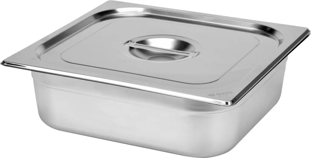 Az egyes fedők felületén található további dombornyomás erősíti a szerkezetet, védve a használat során keletkező gyűrődésektől. Ez sok éves használatot garantál minden körülmények között.A legjobb minőségű 201-es típusú rozsdamentes acélból készült, matt és sima felülettel, a GASTRO NORM PN-EN 631-1:1996 szabványnak megfelelően. A mechanikai sérülésekkel, szerves savak és tisztítószerek hatásaival szembeni fokozott ellenállás jellemzi. Éppen ezért mosogatógépben mosható és ellenáll az intenzív felületi súrolásnak. Különös figyelmet fordítottak az olyan részletekre, mint a lekerekített sarkok és a sima élek, amelyek magas szintű biztonságot és higiéniát biztosítanak a használat során.